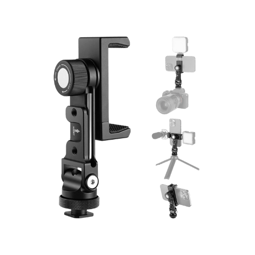 With Free Angle Adjustment, Neewer Cell Phone Tripod Mount Adapter PA001 allows flexible positioning via its 360° rotatable clip, 180° tilt design, and 360° swivel capabilities, making it ideal for multiple filming angles, panorama shots, or live streaming. The cold shoe adapters on both sides allow for easy mounting of a microphone, LED light, or other accessories, making it perfect for vlogging and selfies. Built with a sturdy aluminum alloy, this mount is lightweight (3.5 oz) yet offers reliable, shake-free support for your phone. Ideal for travel, video recording, or online conferencing, this phone mount is both functional and portable. More